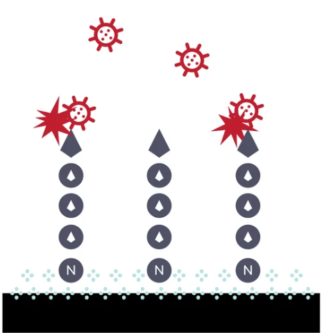 SIQURA is a persistent sanitiser that bonds with surfaces for up to 30 days and kills all bacteria that comes into contact with the surface. SIQURA creates an antimicrobial barrier by grafting electromagnetically charged legs made of silene to the quaternary ammonium.
